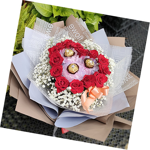 《愛在星空下》白玫瑰金莎巧克力生日/告白情人花束