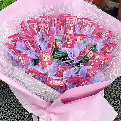 50朵KitKat(或可改雷神) 要你心中永遠感受我的濃濃情意、 讓我們愛情永遠甜蜜幸福...... 50朵KitKat花零食巧克力 花束包裝