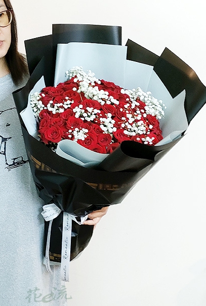 《風情萬種》99朵紅玫瑰滿天星情人節玫瑰花束