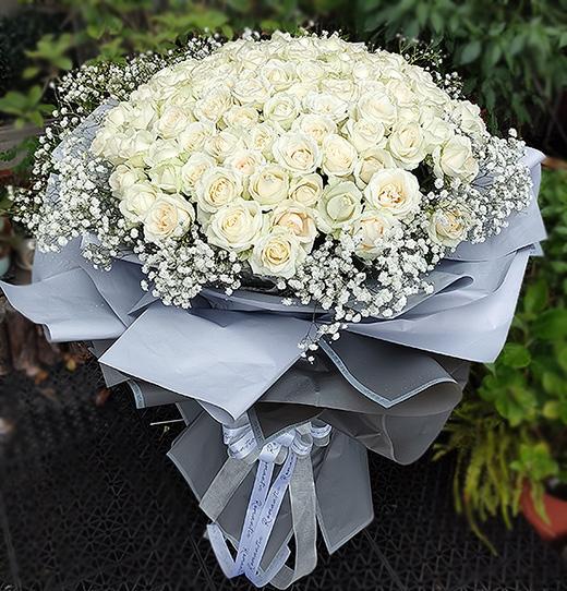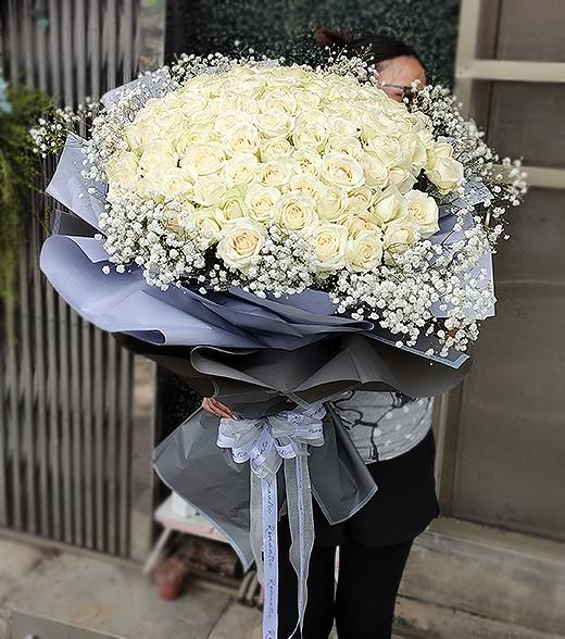 《求婚驚喜》頂級國產99朵翡翠白玫瑰大型包裝求婚花束