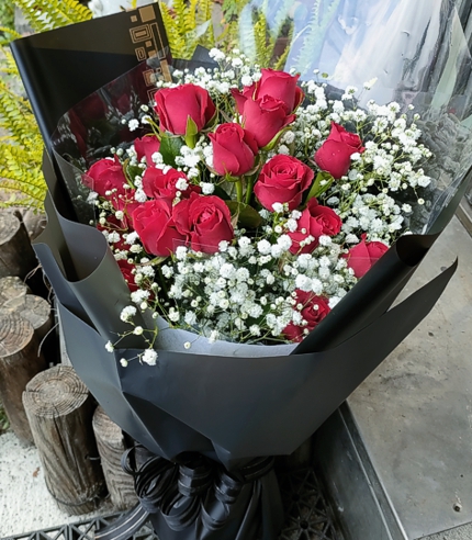 18-20朵紅玫瑰 滿天星
