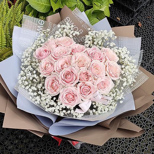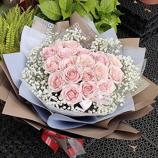 【粉愛的心】心型粉玫瑰滿天星金莎情人節花束