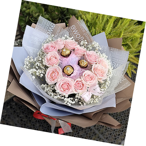 【火熱愛情】紅玫瑰滿天星情人節花束