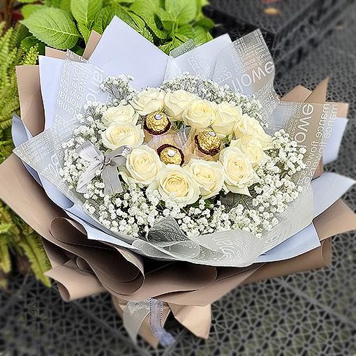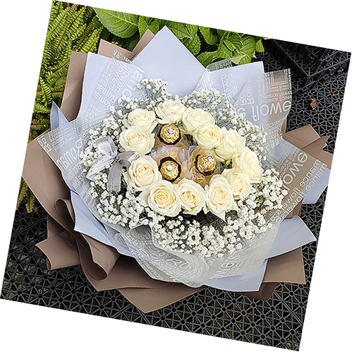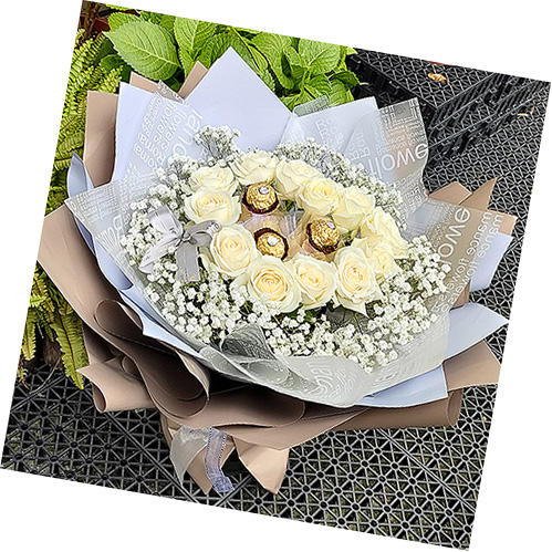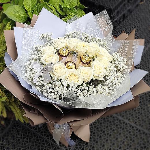 《親蜜愛人》白玫瑰滿天星花束(情人節花束精選)