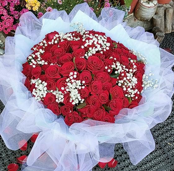 《Kiss,My love》Kiss情侶99朵玫瑰花束(情人節花束精選)