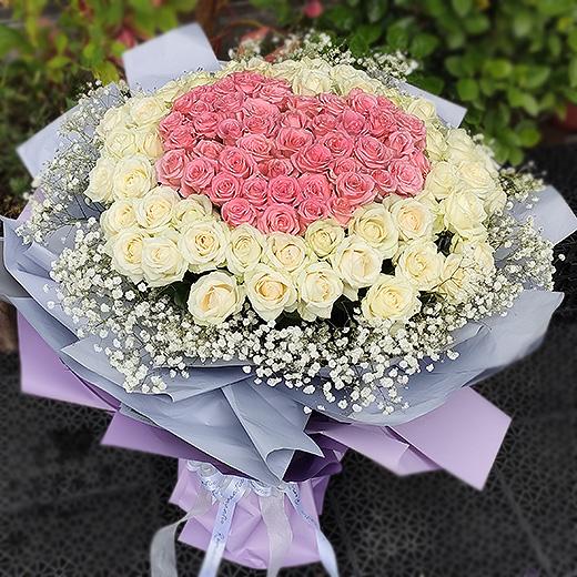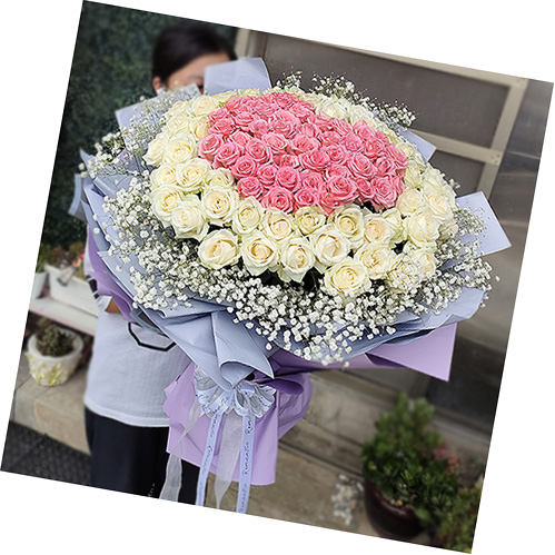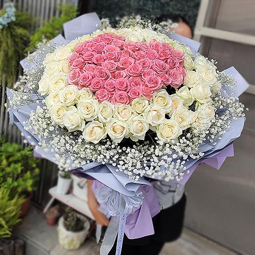 《純情依依》99朵白粉雙色玫瑰花束(情人節花束精選)